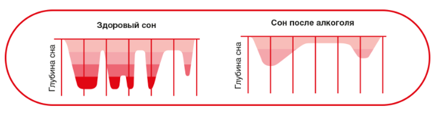 Кроме того, каждый эпизод употребления спиртных напитков влияет и на мышечный тонус, а значит — возрастает риск остановки дыхания во сне, алкогольного апноэ. Это дополнительно ухудшает качество ночного отдыха, ведь к нарушениям, появившимся из-за гормонального дисбаланса, добавляется гипоксия и сокращение глубоких фаз сна из-за апноэ.